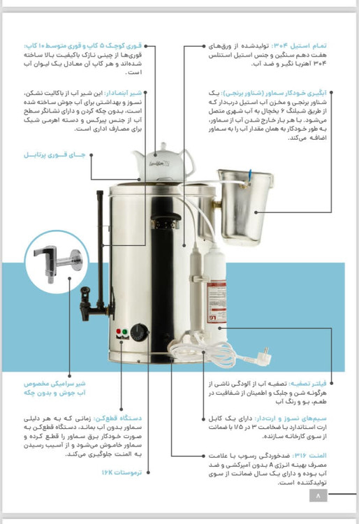 سماور برقی ۶ لیتری فول اپشن دنیای استیل ۳۰۴ ضد زنگ
