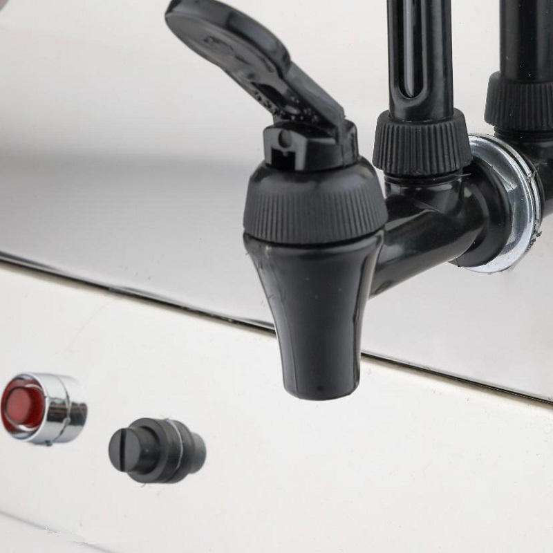 دارای شیر آبنمادار اهرمی با گیج و نشانگر مقدار آب داخل سماور می باشد ،زیرا از جنس باکالیت نشکن می باشد که در مقابل آب جوش مقاوم باشد ، و نشانگر آن از جنس شیشه پیرکس نشکن می باشد.