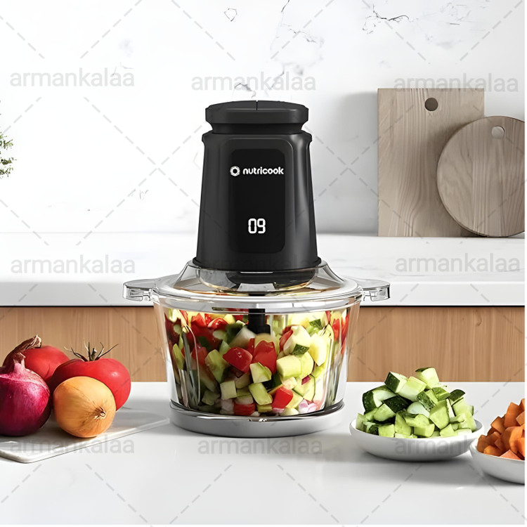 خردکن Nutricook CH6000 یک دستگاه جمعوجور اما بسیار قوی است که با موتور 500 وات و تیغه 6 پره استیل مواد غذایی مختلف مثل گوشت، سبزیجات، پیاز، میوه، ترشی و حتی یخ را سریع و یکدست خرد میکند. این مدل دو سرعت دارد و یک نمایشگر تایمر دیجیتال روی بدنه آن قرار گرفته تا زمان خرد کردن را دقیقتر کنترل کنید.