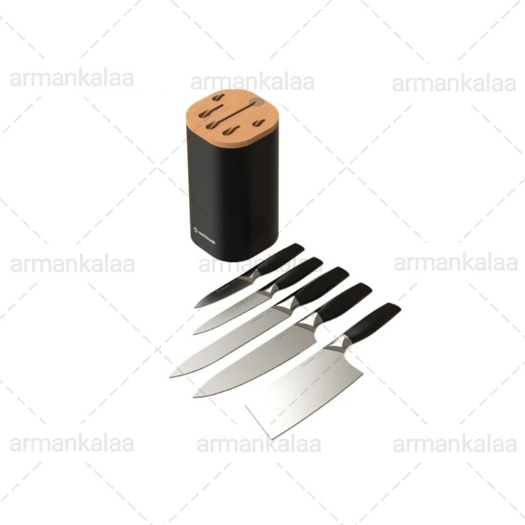 شامل تمام چاقوهای ضروری : چاقوی سرآشپز، چاقوی برش، چاقوی ساطور، چاقوی کاربردی و چاقوی پوستکن