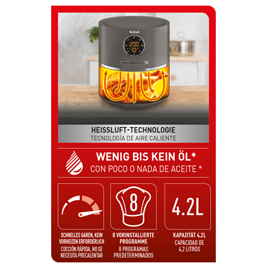 دارای 8 برنامه از پیش تنظیم شده شامل سیب زمینی سرخ کرده، کیک، پیتزا، مرغ، گوشت، میگو و ماهی است