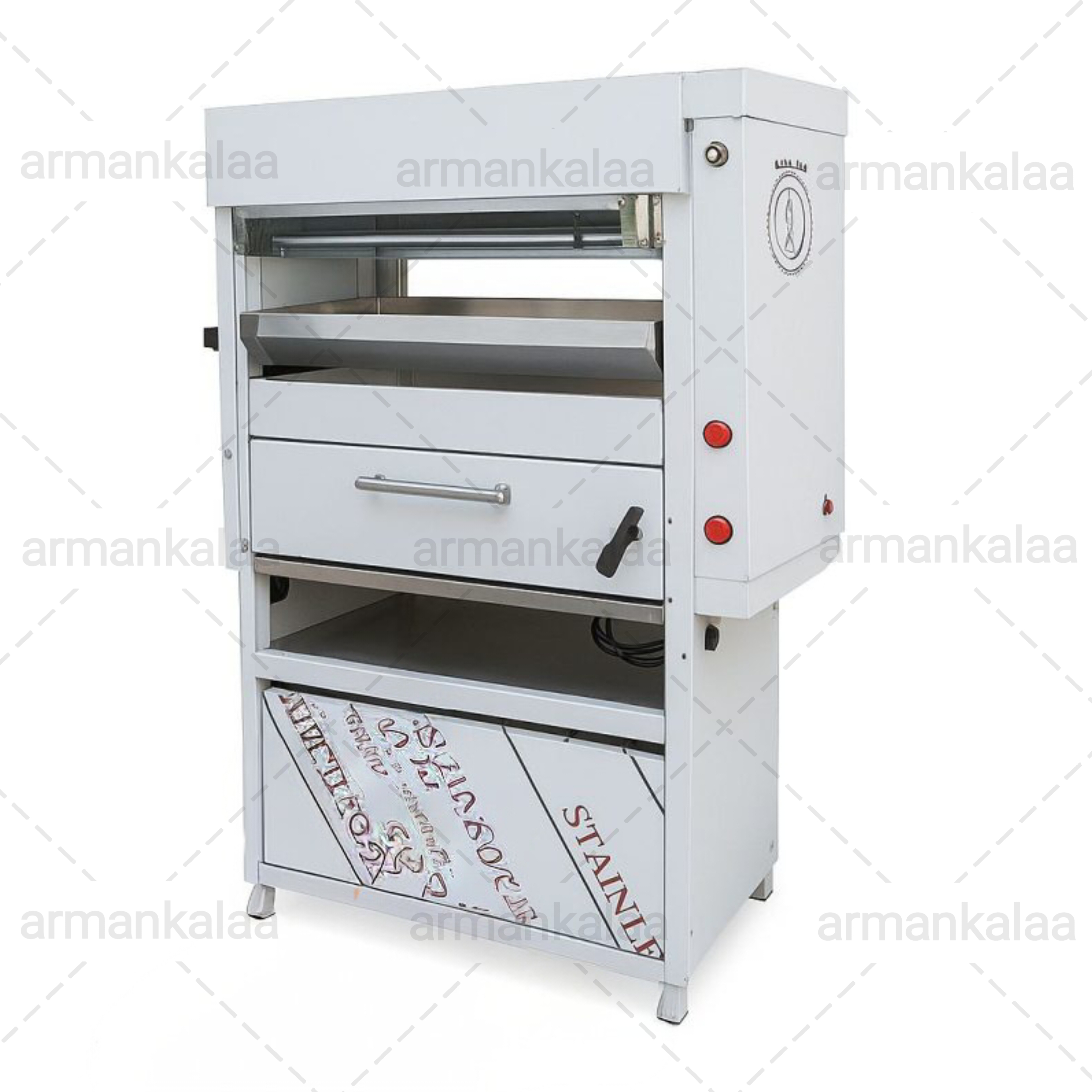 برای راحت قرار دادن سیخ ها داخل دستگاه برای این کار مجموعه کهن تجهیز حالت اسانسوری درست کرده ک بعداز پخت مواد میتوان از دو دسته اهرمی گرفت و کشید پایین بدون دردسر