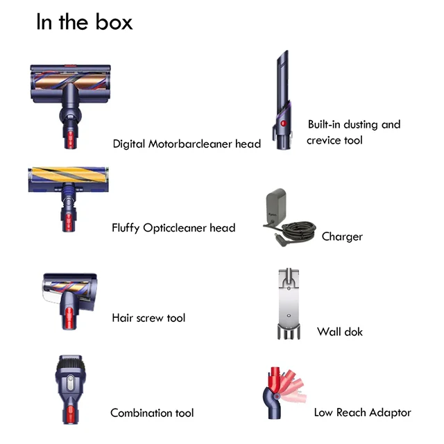 تبدیل Low reach adaptor:برای راحتتر کردن دسترسی به مناطق پایین و سختدسترس در جاروبرقیهای دایسون طراحی شده است. این آداپتور بهویژه برای کسانی که نیاز دارند تا در زیر مبلمان، زیر تختها یا دیگر فضاهای تنگ و پایین تمیزکاری کنند، بسیار مفید است.