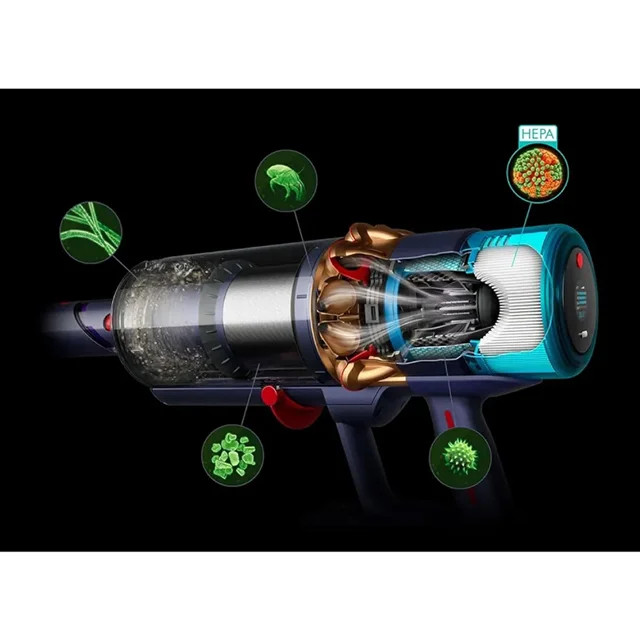 - Digital Motorbar Cleaner Head:سری مکش اصلی دایسون با موتور داخلی و قابلیت تنظیم خودکار برای انواع سطوح (فرش، موکت، سرامیک).دارای تیغههای ضد گره خوردن مو.