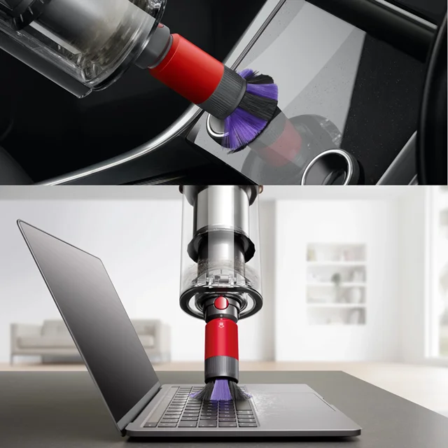 -سریBuilt-in Dusting and Crevice Tool:یکی از جدیدترین و کاربردیترین ابزارهای دایسون است که دو قابلیت گردگیری سطوح حساس و تمیز کردن شکافها و درزها را در یک طراحی یکپارچه ارائه میدهد. این ابزار برای استفاده آسانتر بهصورت داخلی در دسته جارو جاسازی شده و همیشه در دسترس است.