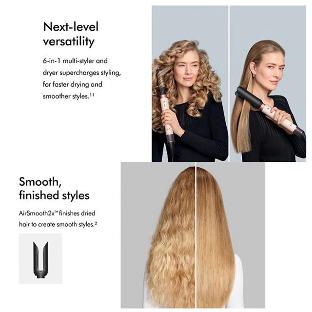 - طراحی سبک، ارگونومیک و کمصدا:با وزن حدود 410 گرم که نسبت به نسل قبلی Airwrap سبک تر هم شده،و صدای کمتر از سشوارهای سنتی، استفاده روزانه بدون خستگی و مزاحمت صوتی فراهم شده است.