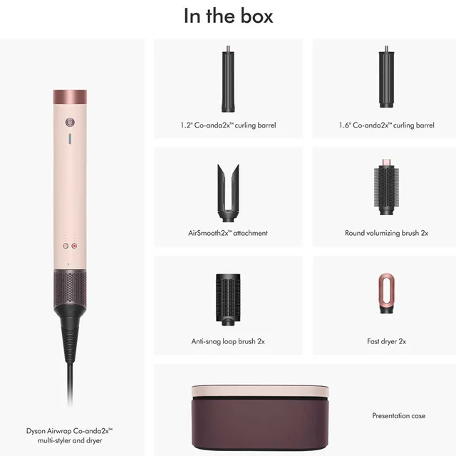 - فناوری تقویت شده Co-anda2X بدون حرارت آسیبزا: استفاده از جریان هوای منحنی اثر Coanda با شدت 2 برابری در مقایسه با نسل قبلی Dyson Airwrap ها، برای کشیدن مو به سمت سری و حالتدهی طبیعی بدون استفاده از حرارت بالا و بدون به کار بردن سری های فلزی، که باعث محافظت از سلامت موی شما میشود.