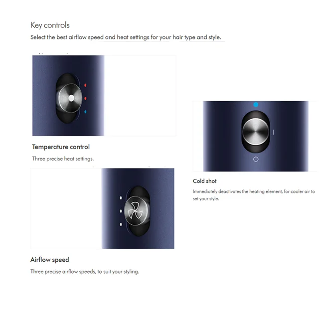 - فناوری Coanda بدون حرارت آسیبزا: استفاده از جریان هوای منحنی اثر Coanda برای کشیدن مو به سمت سری و حالتدهی طبیعی بدون استفاده از حرارت بالا و بدون به کار بردن سری های فلزی، که باعث محافظت از سلامت موی شما میشود.