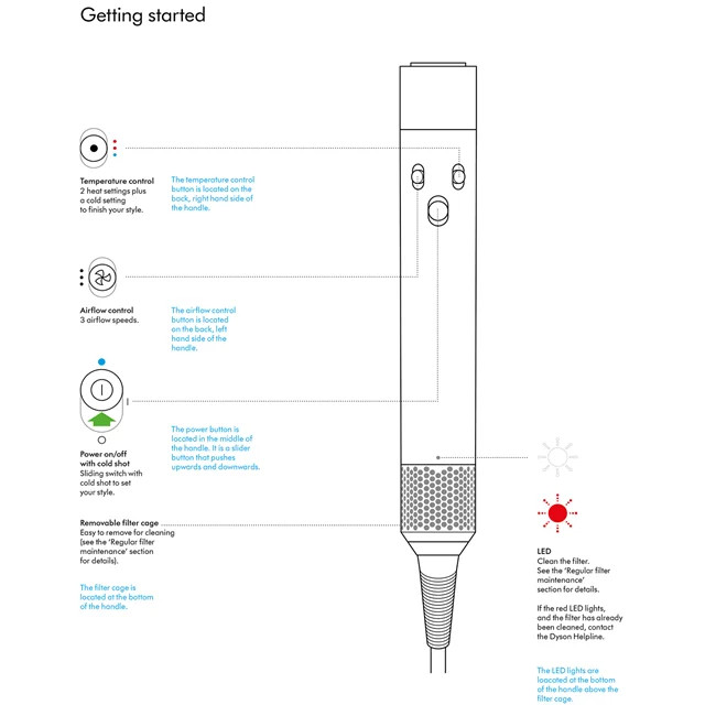 - به صورت دوره ایی و بسته به میزان استفاده شما، فیلتر را بر اساس دستور العمل Dyson شسته و با فرچه مخصوص داخل محصول تمیز کرده؛ ودر نظر داشته باشید بعد از شستن فیلتر حتما تا 24 ساعت اجازه خشک شدن در محیطی عاری از رطوبت، به آن بدهید.