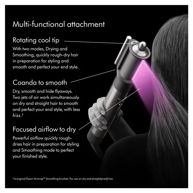 - فناوری Coanda بدون حرارت آسیبزا: استفاده از جریان هوای منحنی اثر Coanda برای کشیدن مو به سمت سری و حالتدهی طبیعی بدون استفاده از حرارت بالا و بدون به کار بردن سری های فلزی، که باعث محافظت از سلامت موی شما میشود.