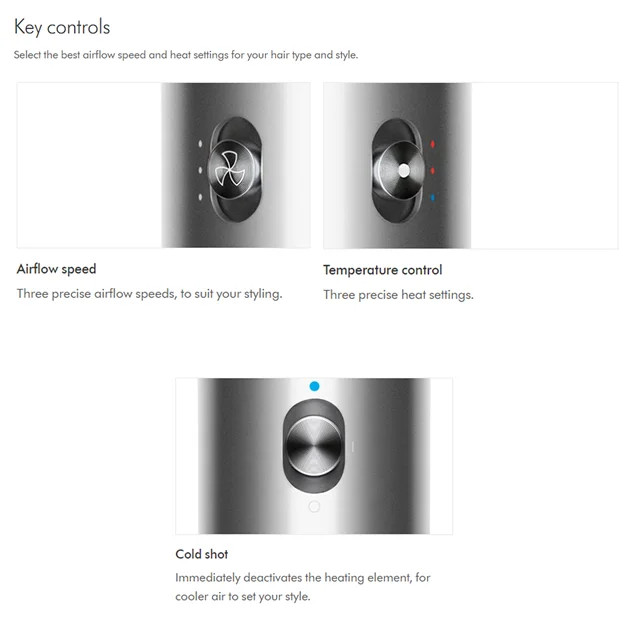 - فناوری Coanda بدون حرارت آسیبزا: استفاده از جریان هوای منحنی اثر Coanda برای کشیدن مو به سمت سری و حالتدهی طبیعی بدون استفاده از حرارت بالا و بدون به کار بردن سری های فلزی، که باعث محافظت از سلامت موی شما میشود.