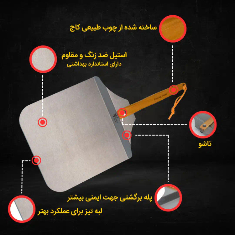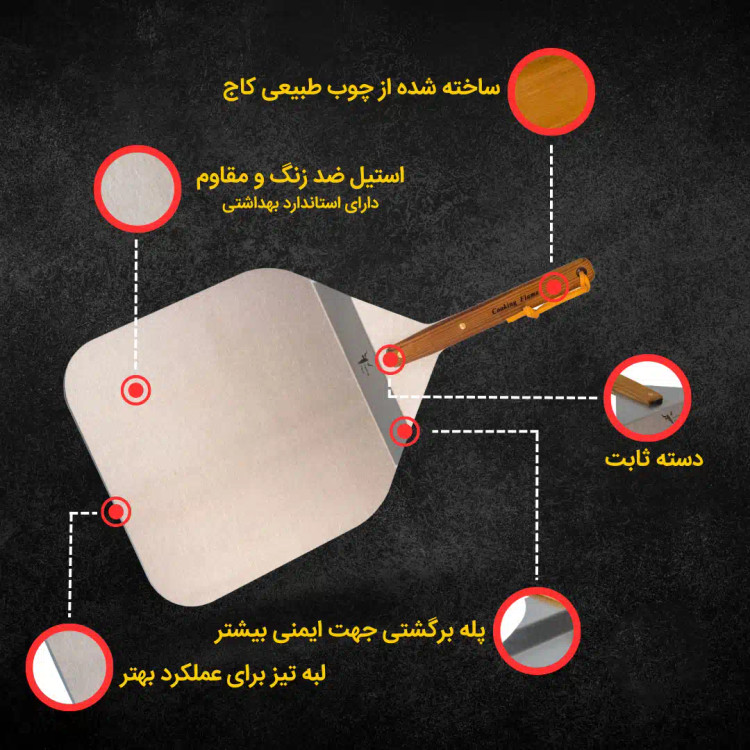 ویژگیهای برجسته پارو پیتزا دسته ثابت 28 سانتیمتری کوکینگ فلیم: