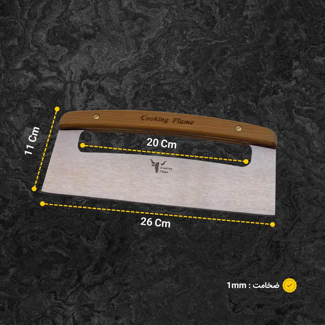کاردک خمیر 26 سانتیمتری کوکینگ فلیم، ابزاری همهکاره است که در آشپزخانههای حرفهای و خانگی کاربرد دارد. این کاردک خمیر 26 سانتیمتری برای برش و جدا کردن خمیر در آمادهسازی پیتزا، شیرینی و نان، همچنین تمیزکاری سطح گریل و باربیکیو، بهترین انتخاب است.