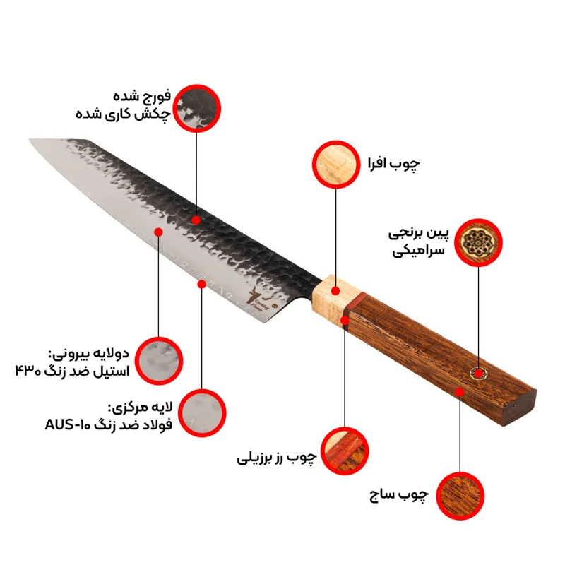 چاقو آشپزخانه دسته چوبی صادراتی San Mai 3
