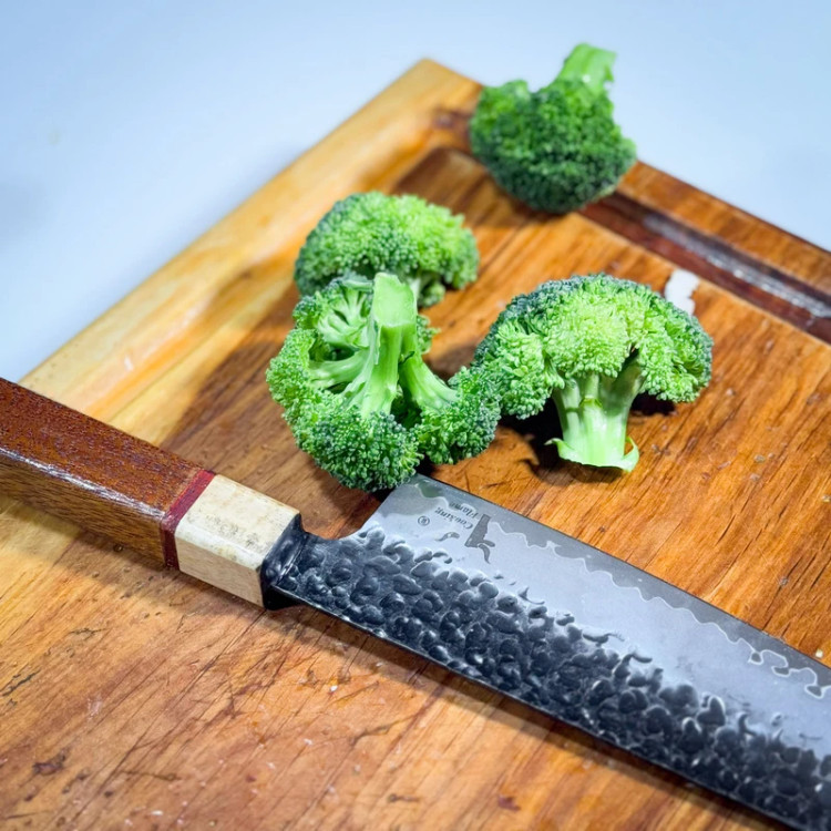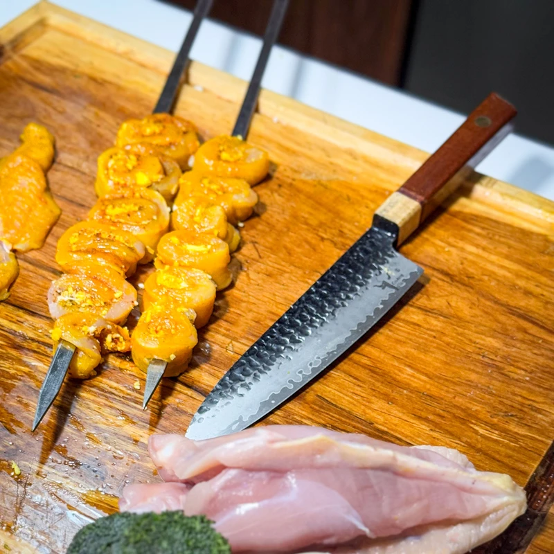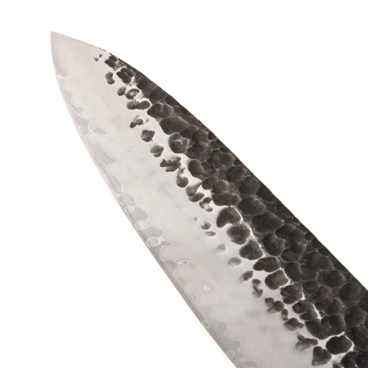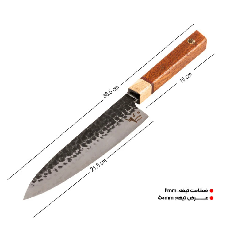 چاقوی سان مای از یک لایه سخت مرکزی با تیغه فولادی ژاپنی AUS-10 و طراحی دو لایه استیل ۴۳۰ در دو طرف هسته یکی از بهترین انتخابها برای کافهها، رستورانها و هتلها است. این چاقو به دلیل ترکیب ویژگیهای برجسته و کیفیت عالی، ابزاری بینظیر برای سرآشپزان حرفهای و علاقهمندان به آشپزی است. ویژگیهای چاقوی سان مای: - تیغه فولادی ژاپنی AUS-10 با سختی 60 HRC: فولاد AUS-10 که از معتبرترین فولادهای ژاپنی است، ترکیب میشود تا چاقویی با لبهای بسیار تیز و مقاوم در برابر فرسایش تولید کند. این ویژگی باعث میشود که چاقو تا مدتها تیز بماند و نیاز به تیز کردن مکرر نداشته باشد. - دو لایه استیل ۴۳۰ برای افزایش انعطافپذیری: دو لایه استیل علاوه بر افزایش مقاومت در برابر خوردگی و سایش، به چاقو انعطافپذیری بالایی میبخشد و به راحتی میتوانید از آن برای انواع کارهای آشپزی استفاده کنید. - مقاومت در برابر زنگ زدگی و سایش: ترکیب کروم، مولیبدن و وانادیوم در فولاد AUS-10، مقاومت بالای چاقو در برابر خوردگی و زنگ زدگی را تضمین میکند و دوام و عمر مفید طولانی را برای استفادههای روزمره در رستورانها، کافهها و هتلها فراهم میآورد. - عملیات فورج برای بهبود عملکرد: چاقوی سان مای با عملیات چکشکاری به دقت و زیبایی ساخته میشود که علاوه بر ظاهر جذاب، سختی و عملکرد بهتری نیز به چاقو میبخشد. این عملیات کمک میکند که مواد غذایی به راحتی از سطح تیغه جدا شوند. دسته چوبی: دسته چاقو از ترکیب چوب ساج آفریقایی، رز برزیلی و افرا با کیفیت بالا و مقاومت عالی در برابر مواد خوراکی، اسیدها و قارچها ساخته شده است.این چوب ها جزو چوب های گران قیمت در جهان هستند که دسته لایق این تیغه را به وجود آورده اند. دسته چوبی 8 ضلعی علاوه بر حفظ اصالت چاقوهای ژاپنی دارای استحکام بالایی هستند که تجربهای راحت و ارگونومیک برای کاربر به ارمغان میآورد و در استفادههای طولانیمدت خستهکننده نمیشود. مزایای استفاده برای کافهها و رستورانها: - عملکرد بینظیر در محیطهای پر استفاده: - سهولت استفاده و ارگونومی عالی: - مقاومت در برابر شرایط سخت آشپزی - ظاهر شیک و جذاب - مناسب برای خرد کردن، برش زدن و چاکزنی انواع مواد غذایی از جمله گوشت، ماهی، سبزیجات و میوهها.