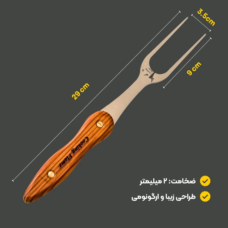 چنگال باربیکیو کوکینگ فلیم مدل B29 – کوچکتر، دقیقتر، حرفهایتر اگر دنبال یک ابزار خوشدستتر و جمعوجور برای آشپزی هستید، چنگال باربیکیو مدل B29 گزینهای عالی و هوشمندانه است. با طراحی شاخکهای بلندتر و باریکتر، این مدل برای کنترل بیشتر و جابهجایی دقیقتر گوشت و سبزیجات گریلشده ساخته شده است. ویژگیهای کلیدی: - بدنه مقاوم از استیل ضد زنگ برای دوام بالا و عملکرد حرفهای - دسته چوبی ارگونومیک از چوب کاج با طراحی خوشدست - شاخکهای بلند و باریکتر برای نفوذ راحتتر به گوشت و جابهجایی دقیق - اندازه جمعوجورتر نسبت به مدل B39، مناسب برای کنترل بهتر در فضاهای کوچکتر یا استفادههای روزمره - مناسب برای سرو و پخت استیک، مرغ، ماهی و سبزیجات با چنگال باربیکیو مدل B29، تجربهای دقیقتر، سبکتر و حرفهای از آشپزی را تجربه کنید