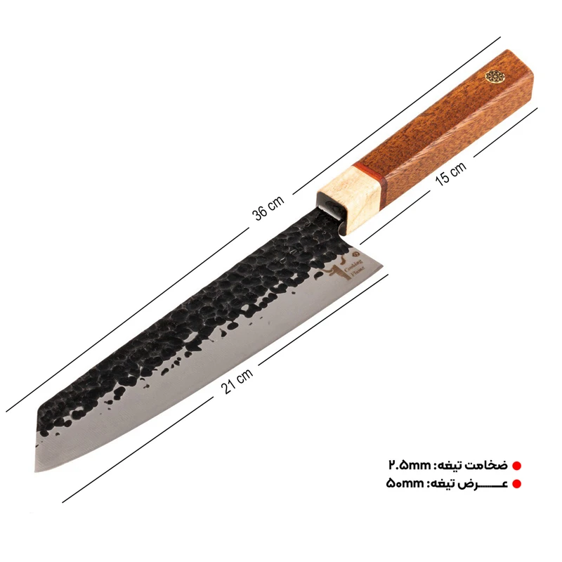 چاقو با تیغه فولاد ژاپنی با تیغه فورج شده از فولاد ضد زنگ 5Cr15MoV ساخته شده، یک انتخاب عالی برای سرآشپزها، رستورانها و هتلها است. این چاقو با طراحی حرفهای و ویژگیهای منحصر به فرد خود، توانسته به عنوان یک ابزار کارآمد و مقاوم، تجربهای عالی در آشپزی حرفهای به ارمغان آورد. ویژگیهای چاقو تیغه فولادی: - فولاد ضد زنگ 5Cr15MoV: فولاد 5Cr15MoV یک فولاد ژاپنی است که به دلیل داشتن مقدار مناسب کروم، مقاومت بالایی در برابر خوردگی دارد. این فولاد علاوه بر سختی 52±2 راکول C، در برابر فرسایش و زنگ زدگی مقاومت زیادی از خود نشان میدهد و باعث افزایش طول عمر چاقو میشود. - تیز کردن آسان: این چاقو به راحتی با ابزارهای مناسب تیز میشود، که این ویژگی برای محیطهای شلوغ و پرکار مانند رستورانها و هتلها اهمیت زیادی دارد. این ویژگی نیاز به نگهداری مداوم را کاهش میدهد و به سرآشپزان این امکان را میدهد که به راحتی تیغه را در وضعیت ایدهآل نگه دارند. - مقاومت در برابر ضربه: این چاقو علاوه بر مقاومت در برابر خوردگی، قادر به تحمل ضربات و نیروهای جانبی است. بنابراین، در محیطهای حرفهای مانند آشپزخانههای رستورانی، جایی که ممکن است فشار و ضربات زیادی به چاقو وارد شود، عملکرد بینظیری خواهد داشت. - دسته چوبی: دسته چاقو از ترکیب چوب ساج آفریقایی، رز برزیلی و افرا با کیفیت بالا و مقاومت عالی در برابر مواد خوراکی، اسیدها و قارچها ساخته شده است.این چوب ها جزو چوب های گران قیمت در جهان هستند که دسته لایق این تیغه را به وجود آورده اند. دسته چوبی 8 ضلعی علاوه بر حفظ اصالت چاقوهای ژاپنی دارای استحکام بالایی هستند که تجربهای راحت و ارگونومیک برای کاربر به ارمغان میآورد و در استفادههای طولانیمدت خستهکننده نمیشود. - عملیات فورج (چکشکاری): چاقوی سرآشپز با عملیات فورج ساخته شده است که باعث میشود تیغه از سختی بالا و استحکام بالایی برخوردار باشد. این عملیات علاوه بر بهبود عملکرد مکانیکی، ظاهری زیبا و منحصر به فرد به چاقو میدهد که میتواند جذابیت بصری بیشتری در آشپزخانههای حرفهای ایجاد کند. چرا سرآشپزهای حرفه ای، رستورانها و هتلها باید این چاقو را بخرند؟ - مقاومت در برابر شرایط کاری سخت - افزایش بهرهوری و کارایی در آشپزخانهها - ظاهر شیک و مدرن - آسانی در نگهداری