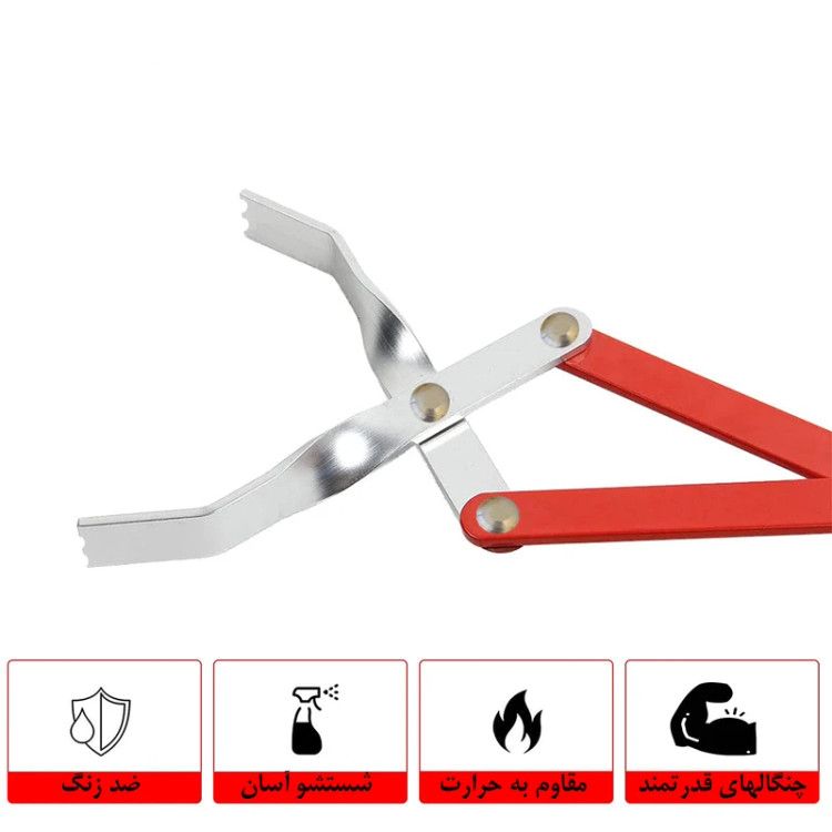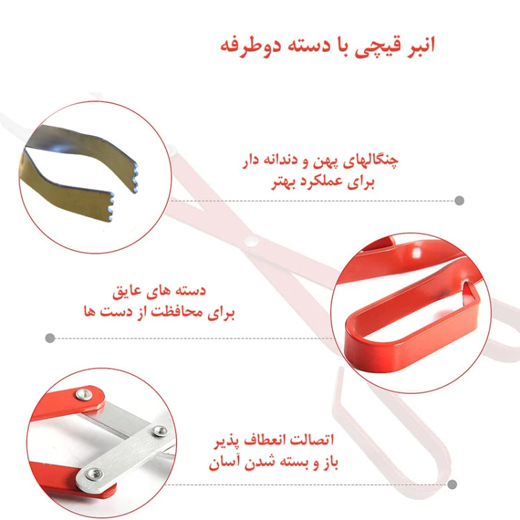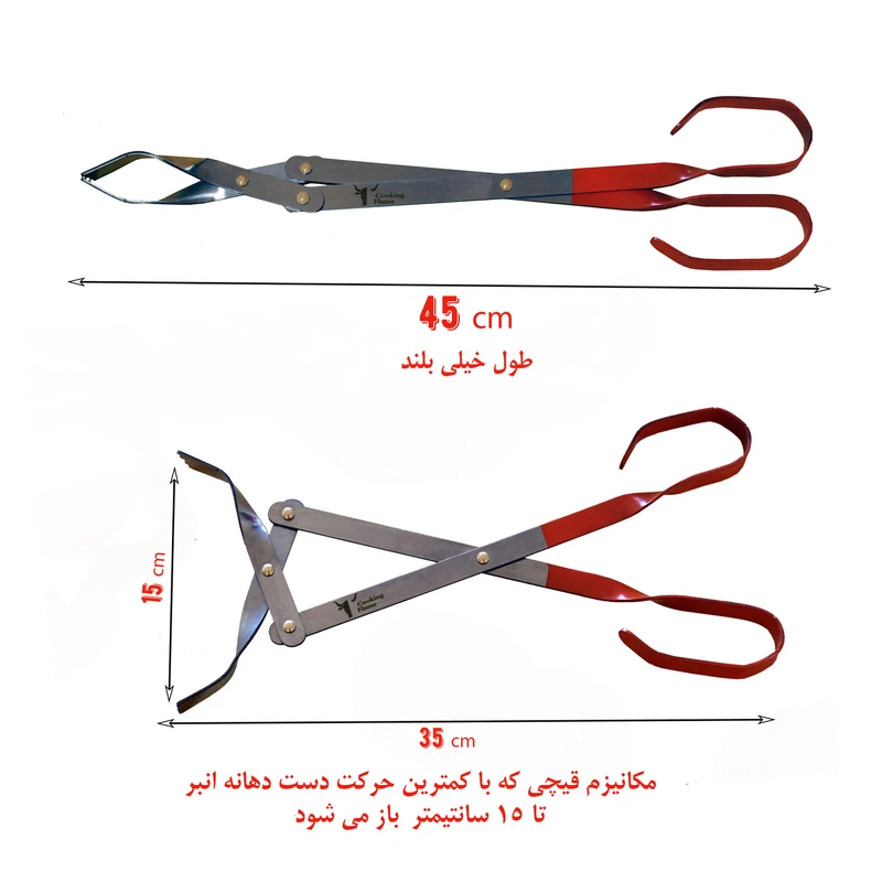 وسایل آشپزی علاوه بر کیفیت باید زیبا نیز باشند انبر «cooking flame» (کوکینگ فلیم) مدل «Q45» برای جابجایی و برگرداندن گوشت، سوسیس یا سایر مواد غذایی روی باربیکیو یا کبابپز کاربرد دارد انبرهای زیادی وجود داردند اما این انبر چنگالهای بزرگ و دسته بلندی دارد که به هنگام طبخ به آشپز کمک میکند با فاصله زیاد از باربیکیو کار کند مکانیزم قیجی مانند این مدل از انبر به شما اجازه میدهد که با کمترین حرکت دست کوچکترین قطعات تا بزرگترین قطعات را جابجا کنید این مکانیزم حالت فنری ندارد و کار کردن را لذت بخش میکندو همچنین بهعلت دارا بودن چنگالهای بزرگ و محکم ، جابجای قطعات بزرگ را برایتان آسانمیکند؛ بهاینترتیب هنگام کباب کردن انواع مواد غذایی روی باربیکیو، این انبر کارایی فراوانی خواهد داشت نکته قابل توجهی وجود دارد! به دلیل استفاده از استیل با ضخامت زیاد شما میتوانید برای مدیریت هیزم و زغال هم از این انبر استفاده کنید . همانطوری که در تصاویر دیده میشود، بدنهی انبر بهطور کامل از استیل ضد زنگ ساخته شده است تا در برابر حرارت و گرمای باربیکیو، مقاومت و استحکام خوبی داشته باشد . دسته ها با لایه سیلیکون عایق شده اند تا علاوه بر احساس لطافت، از سوختن دست هنگام لمس انبر جلوگیری کنند. با نگاهی دوباره به تصاویر مشاهده خواهید کرد که لبههای انبر به شکل خاصی طراحی شده است که به شما این امکان را میدهند که با کمترین نیرو بهترین عملکرد را داشته باشید. این دندانهها با گرفتن مواد غذایی کوچک و بزرگ، از افتادن آنها از روی باربیکیو جلوگیری خواهند کرد. محصولات تولید شده توسط برند «کوکینگ فلیم» علاوه بر دارا بودن کیفیت مطلوب در حد برندهای روز دنیا، از قیمت مناسبی برخوردار هستند
