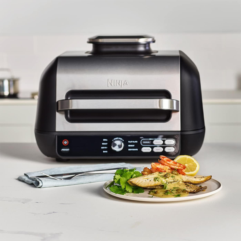 گریل و سرخ کن مدل AG651 نسل جدیدی از محصولات شرکت نینجا بوده که توانسته است تحولی بی نظیر در آشپزی رومزه به وجود بیاورد. این دستگاه با برخورداری از قدرت 2460 وات به راحتی می تواند انواع غذا های کبابی، ساندویچی و … را با بالا ترین کیفیت و تنوع در مدت زمان پایینی آماده کند. این محصول دارای یک سبد سرخ کن بوده که 3.8 لیتر گنجایش دارد و صفحه گریل آن نیز به راحتی می تواند 6 عدد برگر را برای شما آماده کند. سرخ کن و گریل نینجا کاملاً مناسب یک خانواده 4 الی 5 نفره بوده و می توانید با استفاده از آن بهترین غذا ها را برای خودتان و میهمانانتان آماده کنید.