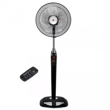 توان مصرفی: كم مصرف با توان حداكثر 60 وات، 220 ولت متناوب، 50 هرتز، حجم بادهی: داراي حجم باددهي بالا به ميزان 56 مترمكعب بر دقيقه، سایر مشخصات: داراي 6 دور متفاوت پروانه (از 550 تا 1200 RPM)، داراي پدال جهت تغيير سرعت يا روشن و خاموش كردن محصول، قابليت برنامه ريزي در زمان خاموش بودن پنكه جهت روشن شدن آن و استفاده از پنكه در زمانهاي مختلف دلخواه، داراي نمايشگر ديجيتالي دما (دماسنج)، داراي صفحه نمايشگر زيبا براي نمايش كليه ويژگيها، داراي رنگ تركيبي مشكي و آبكاري، مجهز به كنترل از راه دور، داراي تايمر 8 ساعته با فواصل زماني 0.5 ساعته، داراي گارد محافظ ايمن طرح ميله اي، داراي موتور مجهز به فيوز حرارتي، داراي قابليت تنظيم آسان زاويه وزش باد به صورت جغجغه اي، قابليت تنظيم گردش افقي قابل كنترل از راه دور، مجهز به حالت ريتم جهت دستيابي به وزش باد ملايم، داراي پايه زيباي پلاستيكي، داراي سيم دوشاخه سه متري با روكش پي وي سي، داراي گواهينامه استاندارد ايمني محصول، داراي لوله استيل و قابليت تنظيم ارتفاع، داراي پايه نگهدارنده ريموت كنترل بر روي بدنه اصلي، داراي 2 ماه وارانتي ،25 ماه گارانتي، 10 سال تامين قطعات و خدمات پس از فروش