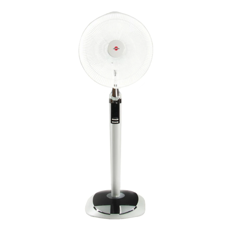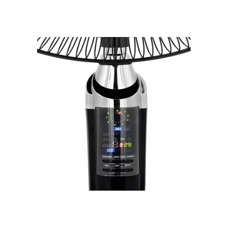 توان مصرفی: كم مصرف با توان حداكثر 60 وات، 220 ولت متناوب، 50 هرتز، حجم بادهی: داراي حجم باددهي بالا به ميزان 56 مترمكعب بر دقيقه، سایر مشخصات: داراي 6 دور متفاوت پروانه (از 550 تا 1200 RPM)، داراي پدال جهت تغيير سرعت يا روشن و خاموش كردن محصول، قابليت برنامه ريزي در زمان خاموش بودن پنكه جهت روشن شدن آن و استفاده از پنكه در زمانهاي مختلف دلخواه، داراي نمايشگر ديجيتالي دما (دماسنج)، داراي صفحه نمايشگر زيبا براي نمايش كليه ويژگيها، داراي رنگ تركيبي مشكي و آبكاري، مجهز به كنترل از راه دور، داراي تايمر 8 ساعته با فواصل زماني 0.5 ساعته، داراي گارد محافظ ايمن طرح ميله اي، داراي موتور مجهز به فيوز حرارتي، داراي قابليت تنظيم آسان زاويه وزش باد به صورت جغجغه اي، قابليت تنظيم گردش افقي قابل كنترل از راه دور، مجهز به حالت ريتم جهت دستيابي به وزش باد ملايم، داراي پايه زيباي پلاستيكي، داراي سيم دوشاخه سه متري با روكش پي وي سي، داراي گواهينامه استاندارد ايمني محصول، داراي لوله استيل و قابليت تنظيم ارتفاع، داراي پايه نگهدارنده ريموت كنترل بر روي بدنه اصلي، داراي 2 ماه وارانتي ،25 ماه گارانتي، 10 سال تامين قطعات و خدمات پس از فروش