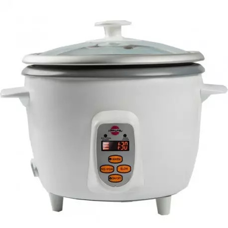 بخارپز براي پخت انواع غذاهاي رژيمي، سبزيجات و غيره (قابليت تنظيم زمان از 45 دقيقه تا 90 دقيقه)، صفحه نمايش LCD با قابليت نمايش ساعت باقيمانده پخت و بارگراف پخت، داراي LED براي نمايش حالتهاي مختلف پخت، داراي برد الكترونيكي و استفاده از تايمر و كنترل كننده الكترونيكي بجاي سيستم تايمر و ترموستات هاي مكانيكي، داراي سيستم آلارم صوتي بعد از اتمام هر پخت، داراي سيستم حفظ برنامه در صورت قطع و وصل برق، داراي ظروف جداگانه مخصوص آرام پز و بخارپز، طراحی زیبای محصول با بدنه فلزی با پوشش رنگ اپوكسي نسوز و مقاوم در برابر حرارت، دیگ مخصوص پخت برنج با روکش مواد تفلون نچسب بهداشتی و مقاوم با کیفیت بالا، درب شیشه ای پيركس و سوپاپدار جهت خروج بخار، استفاده از مواد پلاستیکی بهداشتي و قطعات مقاوم در برابر حرارت، دارای نشان استاندارد ملی ایران (ایمنی)، استفاده از سیم های نسوز جهت افزايش ايمني محصول، ظرفيت 1 ليتر، 8 نفره، مصرف بهينه انرژي با توان 500 وات، داراي 2 ماه وارانتی، 25 ماه گارانتی و 10 سال خدمات پس از فروش