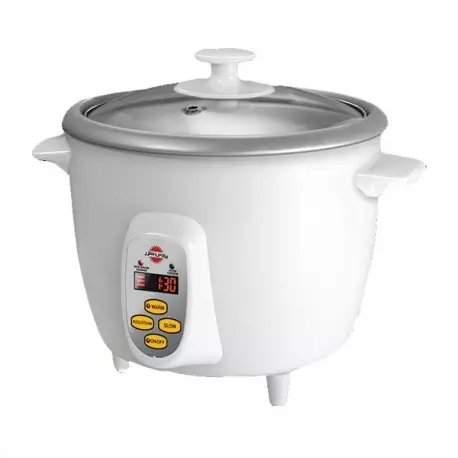 بخارپز براي پخت انواع غذاهاي رژيمي، سبزيجات و غيره (قابليت تنظيم زمان از 45 دقيقه تا 90 دقيقه)، صفحه نمايش LCD با قابليت نمايش ساعت باقيمانده پخت و بارگراف پخت، داراي LED براي نمايش حالتهاي مختلف پخت، داراي برد الكترونيكي و استفاده از تايمر و كنترل كننده الكترونيكي بجاي سيستم تايمر و ترموستات هاي مكانيكي، داراي سيستم آلارم صوتي بعد از اتمام هر پخت، داراي سيستم حفظ برنامه در صورت قطع و وصل برق، داراي ظروف جداگانه مخصوص آرام پز و بخارپز، طراحی زیبای محصول با بدنه فلزی با پوشش رنگ اپوكسي نسوز و مقاوم در برابر حرارت، دیگ مخصوص پخت برنج با روکش مواد تفلون نچسب بهداشتی و مقاوم با کیفیت بالا، درب شیشه ای پيركس و سوپاپدار جهت خروج بخار، استفاده از مواد پلاستیکی بهداشتي و قطعات مقاوم در برابر حرارت، دارای نشان استاندارد ملی ایران (ایمنی)، استفاده از سیم های نسوز جهت افزايش ايمني محصول، ظرفيت 1 ليتر، 8 نفره، مصرف بهينه انرژي با توان 500 وات، داراي 2 ماه وارانتی، 25 ماه گارانتی و 10 سال خدمات پس از فروش